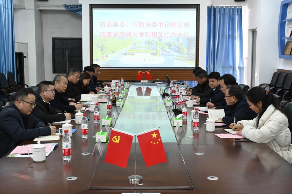 本网讯(记者 博夕)12月26日下午,益阳市委常委、政法委书记胡安邦来永利官网调研指导校园安全稳定工作,并在建规楼402室召开座谈会。校党委书记汤放华、副校长袁志成出席,益阳市委网信办、市公安局、益阳移动公司、电信公司、联通公司相关负责人以及永利官网相关部门负责人参加。