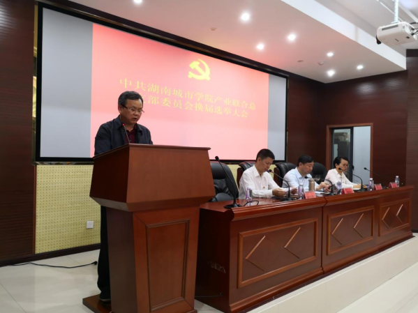 根据《中国共产党章程》和学校党委《关于学校基层组织换届指导意见》(湘城院[2019]12号)等文件精神和相关要求,2019年5月10日下午,中共yl23455永利官网产业联合总支部委员会在建规楼报告厅召开党员大会,进行支部换届选举工作。学校党委委员、副校长谭献良同志出席并讲话,本次会议由产业处处长熊创贤同志主持。
