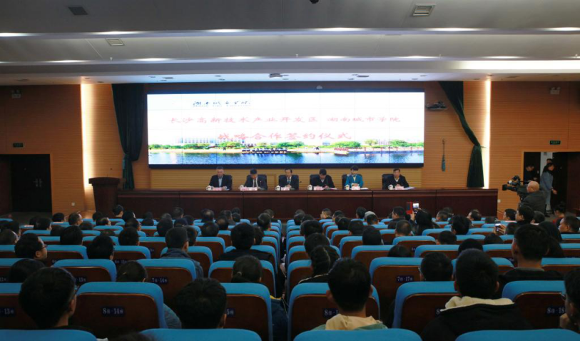 2019年11月30日,yl23455永利官网与长沙国家高新技术产业开发区校地合作协议签订仪式在图书馆报告厅举行。长沙国家高新技术产业开发区党工委书记周庆年,党工委委员、管委会副主任崔晓、帅军,校领导罗成翼、汤放华、姚春梅、郑卫民、谭献良、李斌出席签约仪式。仪式由党委副书记汤放华主持。