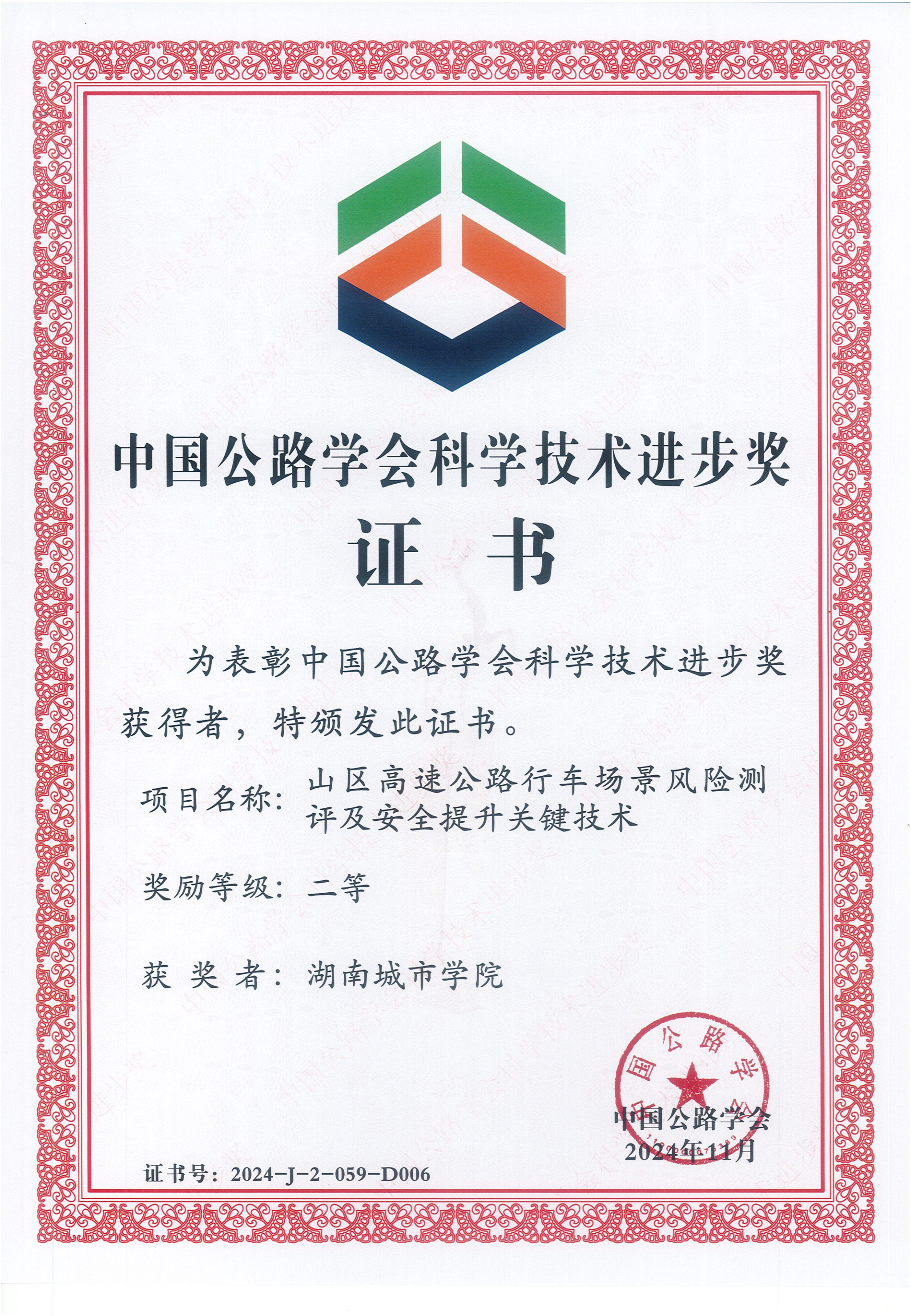 近日,从中国公路学会传来喜讯,yl23455永利官网资产经营有限公司党委书记、设计院院长李志学参与的《山区高速公路行车场景风险测评及安全提升关键技术》项目荣获“2024年度科技进步奖二等奖”。