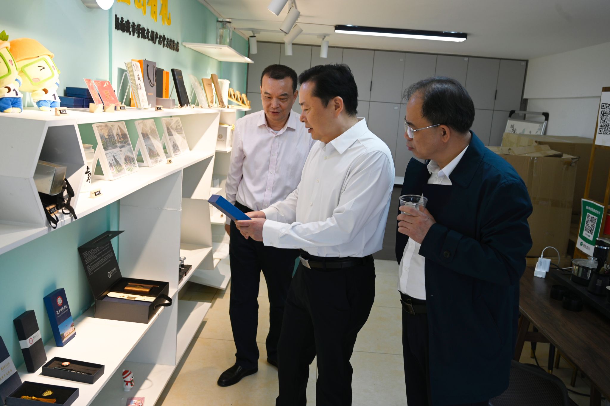 熊炜一行首先来到永利官网大学生创客中心,参观了创新创业展厅、路演厅、团队工作室和项目咨询室,察看师生创新创业成果展示,充分肯定了永利官网学子在科技创新方面展现出的专业素养和创造才能。