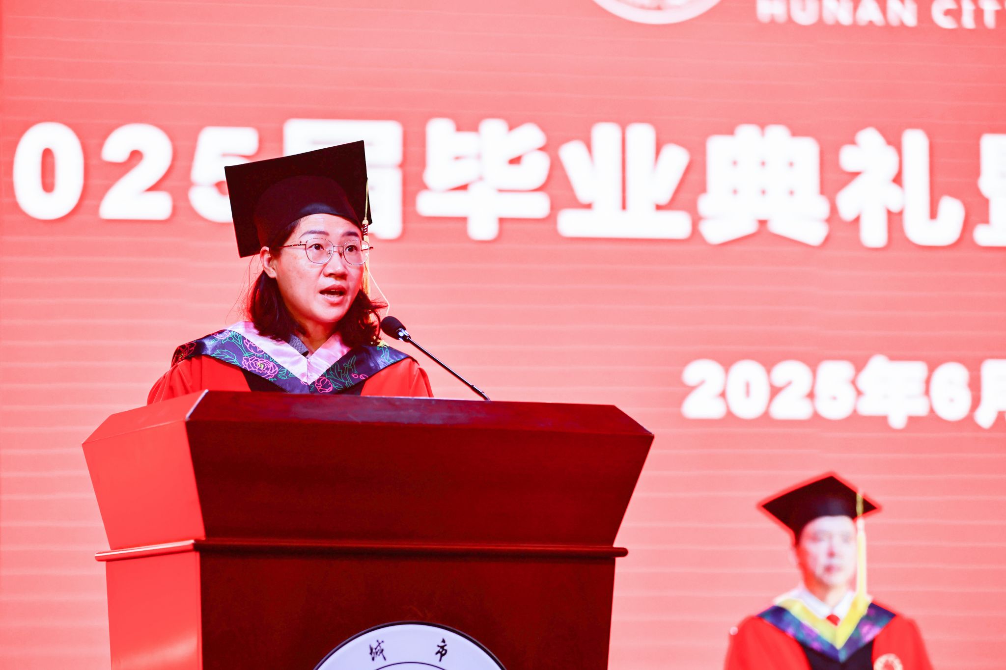 “这里永远是你们的‘充电站’,我们永远是为你们亮着灯的人。”教师代表、建筑与城市规划学院汤慧博士希望同学们带上三句“城院密码”,把“底色”擦得更亮,把“格局”拓得更宽,把“初心”焐得更暖。