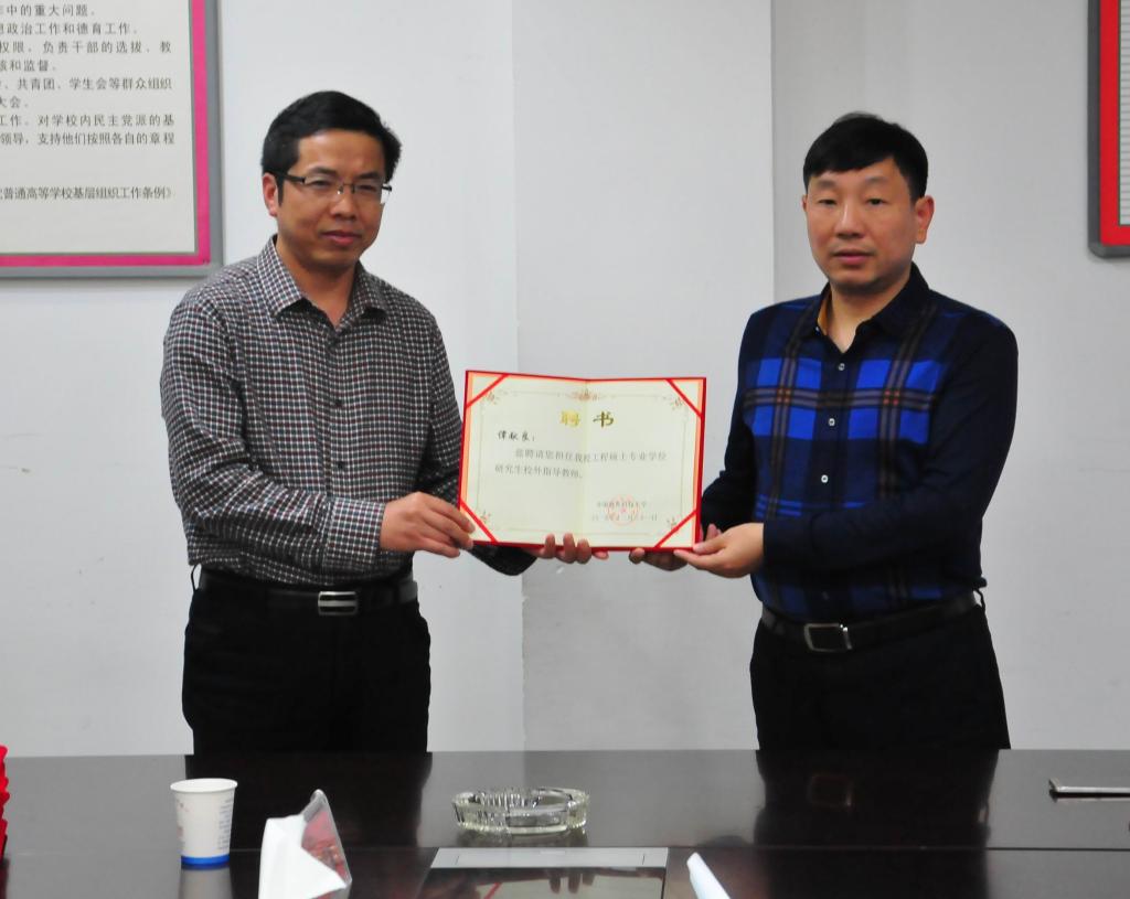 会上,陈伯望代表中南林业科技大学为永利官网谭献良、陈强、蒋建清、陈湘亮、陈咏明、王新忠和陈朝晖七位指导老师颁发专业硕士导师聘书,并介绍了该校及土木工程与力学学院的基本情况、学位的设置以及招生和培养情况。