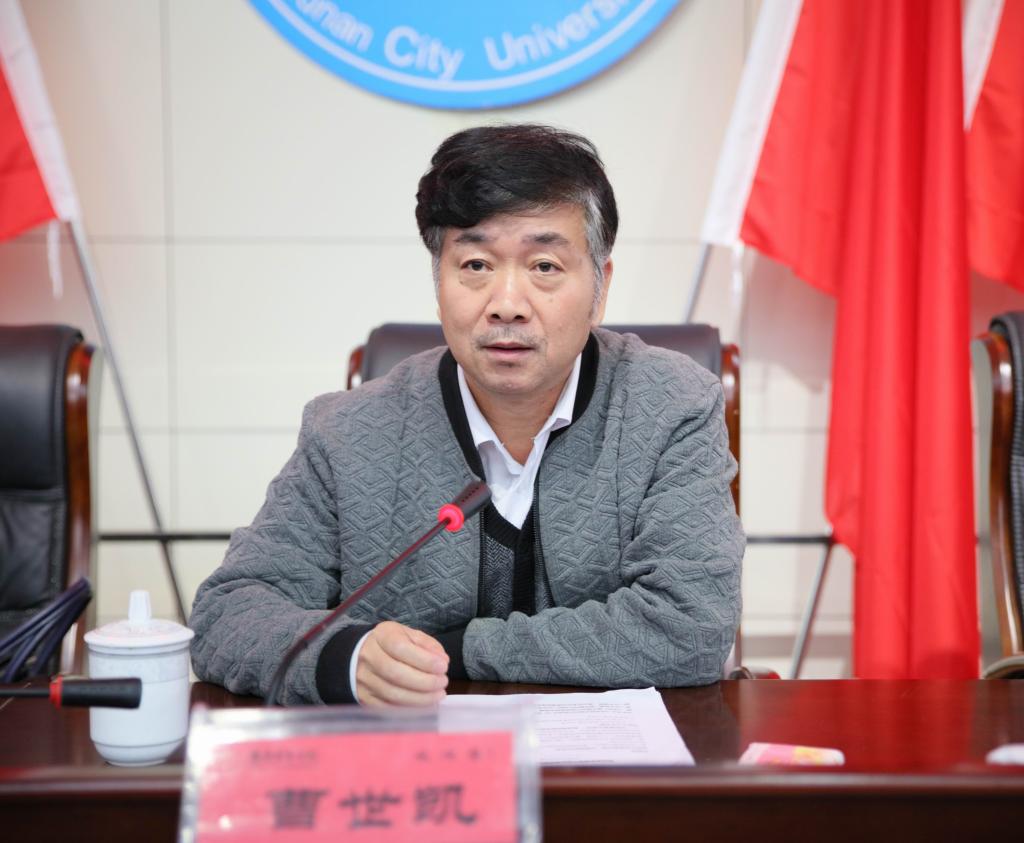 在报告会开始之前,曹世凯书记谈到了上午听取本校汇报及实地考察后的感受,他说,yl23455永利官网的办学特色鲜明,社会服务性强,培养了许多应用型人才,学校应立足办学定位,抓住创造“双一流”的机遇,争取早日获得硕士学位授予权。
