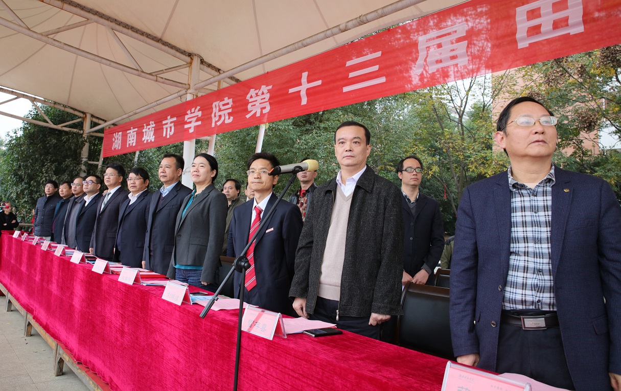党委书记罗成翼宣布第十三届田径运动会开幕,校长李建奇为运动会致开幕词,运动员代表1510403班李维芳、裁判员代表刘红星分别代表运动员和裁判员进行了宣誓。