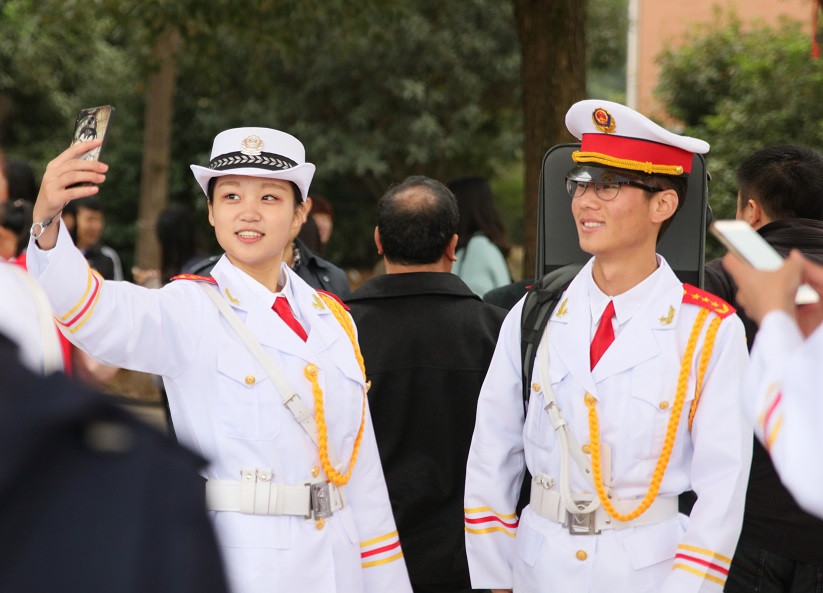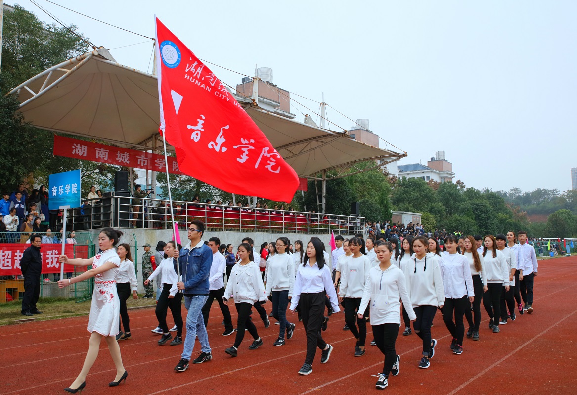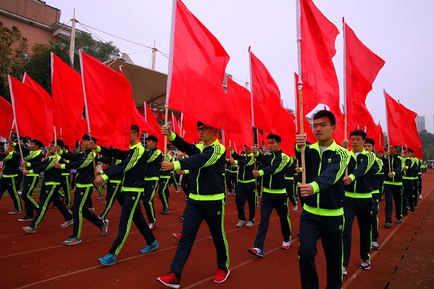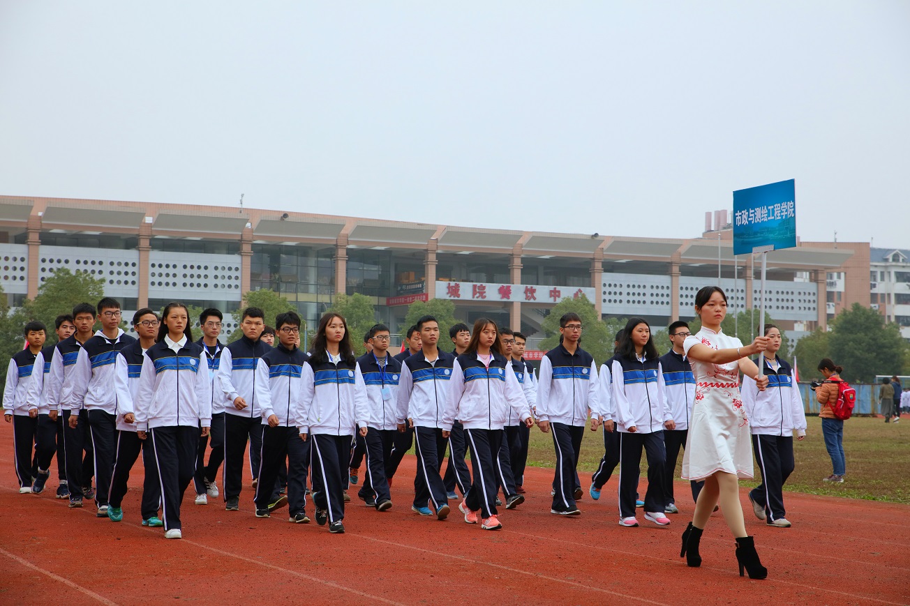 鲜艳的红旗方阵展示城院健儿们的蓬勃朝气