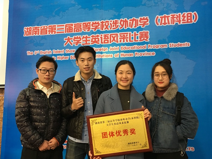 (本网讯)11月26日至27日,湖南省第三届高等学校涉外办学(本科组)大学生英语风采比赛在湖南商学院举行。永利官网获得团体优秀奖。这也是永利官网首次参加全省涉外办学本科组英语比赛。