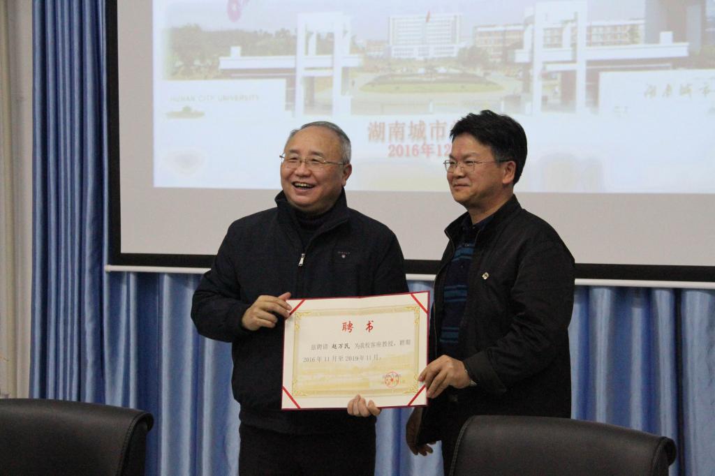 (本网讯)12月7日下午,全国高等学校城乡规划学科专业指导委员会副主任、重庆大学建筑城规学院原院长、博士生导师赵万民教授应邀在永利官网建筑与城市规划学院会议室举行学术座谈,并受聘为永利官网客座教授。党委副书记汤放华,建筑与城市规划学院党政班子成员、城市规划系教师及其他教师代表、规划建筑设计研究院代表等相关人员共40余人参加了聘任仪式和学术座谈。聘任仪式和座谈会由汤放华主持。
