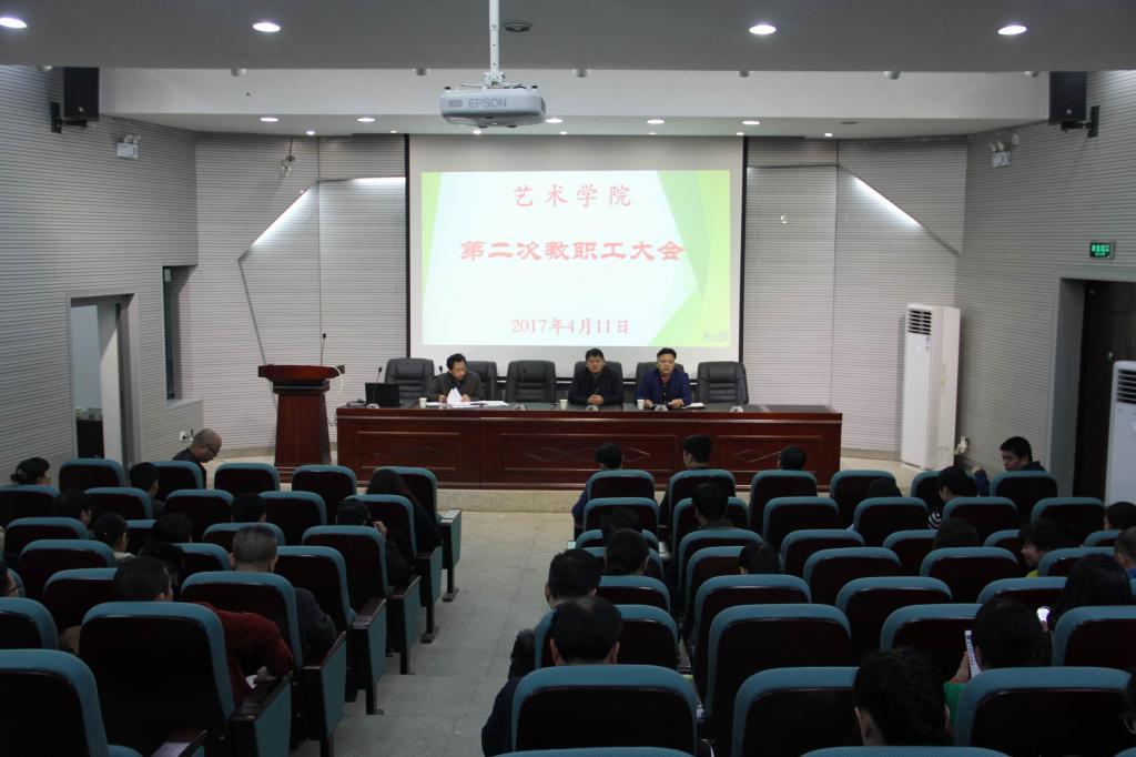 会上,艺术学院院长龙湘平带领艺术学院教职工学习了党委书记在四届二次“双代会”上的讲话、校长工作报告、评论文章《凝心聚力唱响改革大合唱》,解读了《yl23455永利官网岗位绩效工资管理办法》等。(孙智坤)