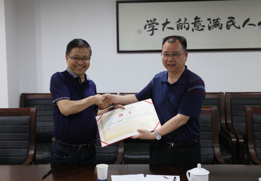 李建奇为李镇彬颁发客座教授聘书,并代表学校向李镇彬的受聘表示热烈欢迎。何振对李镇彬受聘为永利官网客座教授表达了诚挚谢意,并提出了殷切希望。人事处处长袁志成,人文学院院长徐畅贤、党委书记赵再春与李镇彬就工作职责进行了具体交流。李镇彬发表感言,表示对于此次受聘倍感荣幸,并承诺在受聘期间尽职尽责,为母校的建设发展贡献自己的力量。