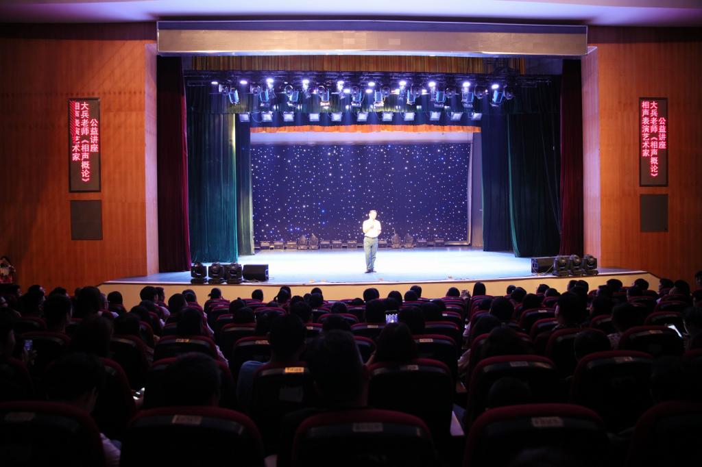 (本网讯)5月11日晚,著名相声表演艺术家大兵应邀在永利官网音乐厅举办了相声公益讲座。校党委书记罗成翼、党委副书记汤放华、纪委书记姚春梅、副校长刘辉煌和近400名师生聆听了讲座并观看了演出。