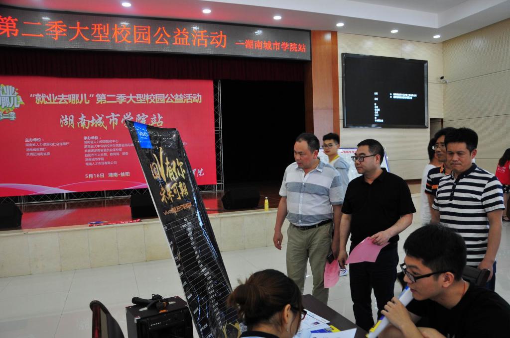 本次活动由湖南省人力资源和社会保障厅、湖南省教育厅、共青团湖南省委主办,yl23455永利官网及湖南省人力资源服务中心、湖南省大中专学校学生信息咨询与就业指导中心、共青团湖南省委员会学校部、湖南人才市场有限公司和益阳市人社局、教育局、团委联合承办,湖南人才网,人才就业社保信息报社协办。40家用人单位齐聚永利官网,为永利官网2017届毕业生提供就业岗位400余个。学校党委行政高度重视此次活动,副校长郑卫民来到活动现场,看望了招聘单位人员和应聘学生,并耐心地与多家用人单位沟通,了解相关情况。
