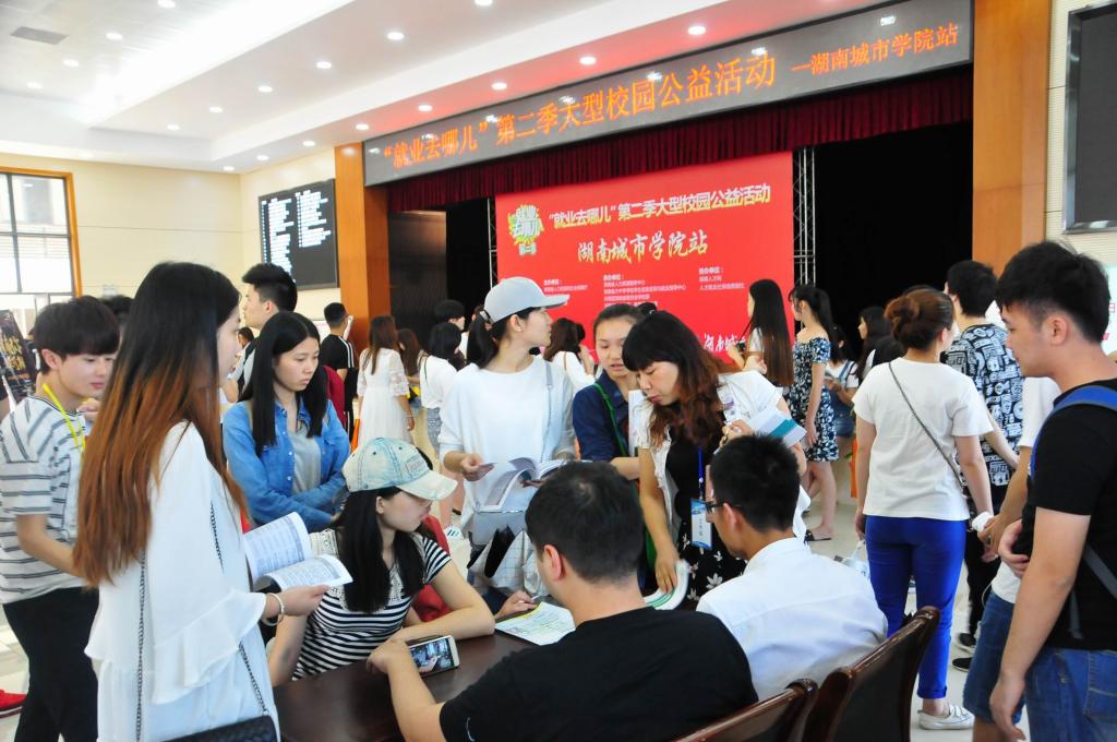 (本网讯)5月16日下午,湖南省“就业去哪儿”第二季大型校园公益活动在永利官网第二办公楼学生活动中心隆重举行。副校长郑卫民、招生就业处全体工作人员以及各二级学院师生几百人参加了此次活动。