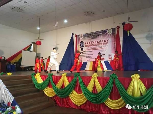 海岸角大学孔子学院汉语教师与海岸角大学孔子学院学生为到场嘉宾及观众呈现了一台精彩纷呈的表演。节目有诗朗诵《水调歌头》、中国-加纳传统服饰秀、中国功夫秀等。中国-加纳传统服饰秀将活动气氛推向了高潮,向观众展示了中加两国传统服饰的魅力。