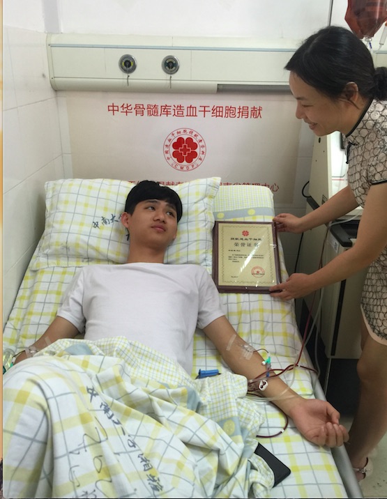 2015年,来自浏阳市的帅气小伙邓英鹏考入了yl23455永利官网管理学院。在学校,他第一次参与无偿献血,就填写了加入中华骨髓库志愿者的申请表。今年3月,他接到了中华骨髓库湖南省分库的电话,得知自己与一名白血病患者初配成功,他毫不犹豫就答应捐献造血干细胞。
