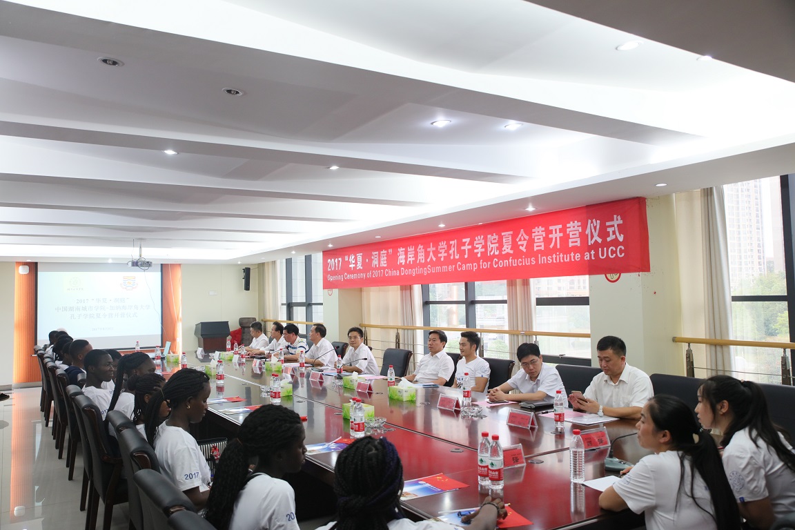 (本网讯)8月5日下午,由国家汉办/孔子学院总部主办,永利官网承办的2017“华夏·洞庭”海岸角大学孔子学院夏令营在永利官网开营。副校长刘辉煌、雷存喜,益阳市外事侨务旅游局副局长张金龙,学校教务处、保卫处、国际合作与交流处、人文学院等相关负责人,夏令营领队老师胡亮才以及来自加纳海岸角大学孔子学院的14名营员参加了开营仪式。