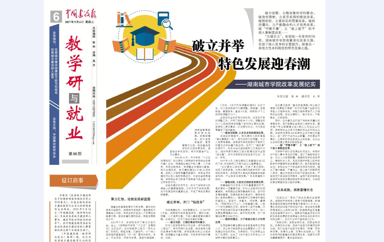 (本网讯)9月6日出版的《中国建设报》第六版发表记者署名文章,以《破立并举 特色发展迎春潮》为题,专题报道永利官网第三次党代会以来改革发展成就。