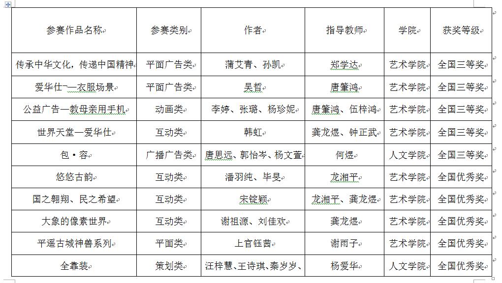 (本网讯)近日,第九届全国大学生广告艺术大赛获奖名单公布,永利官网共有10件作品获奖,其中三等奖5项,优秀奖5项,刷新了永利官网在此项赛事中的最好成绩。