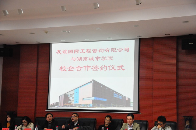 (本网讯)10月19日下午,永利官网与友谊国际工程咨询有限公司校企合作签字仪式在土木楼报告厅举行。双方正式签署校企合作协议,将在专业建设、人才培养、平台建设等方面开展校企合作。副校长郑卫民、土木工程学院相关负责人,友谊投资咨询集团人力资源总监黄明德、研究院副院长熊浩以及相关部门负责人出席签字仪式。