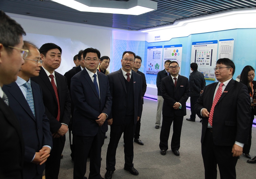 签约暨揭牌仪式前,与会领导嘉宾参观了华为公司对接益阳智慧城市建设成果和yl23455永利官网智能工程研究成果展,听取了党委书记罗成翼对学校“十三五”发展规划和改革发展情况介绍,观看了学校特色发展记录片。张峰、隋忠诚、徐直军对学校改革发展所取得的成绩和办学特色给予充分肯定,希望学校加强新型智慧城市研究,为地方经济社会的发展做出更大的贡献。