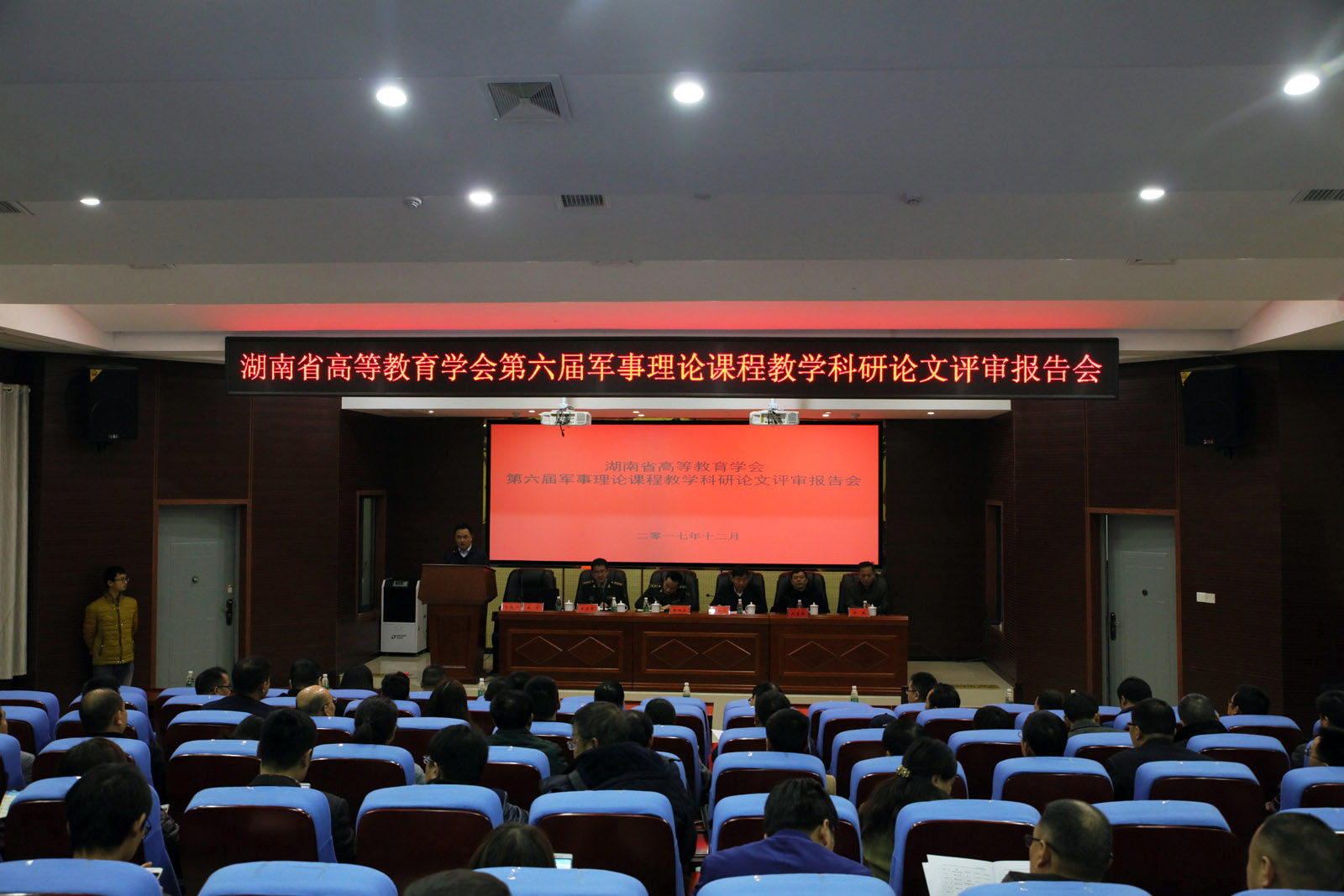 (本网讯)12月22日,湖南省第六届高校军事理论课程教学科研论文评审报告会暨高等教育学会第九届国防教育专业委员会2017年年会在永利官网建规楼121学术报告厅隆重举行。国防科技大学大校李正军教授、湖南省学生军训办公室专职副主任余旭东、湖南省教育厅体卫艺处主任科员王宇、湖南省教育厅体卫艺处原正处级调研员文麦秋,副校长谭献良出席开幕式。各高校武装部负责人及会员单位120余人出席会议。