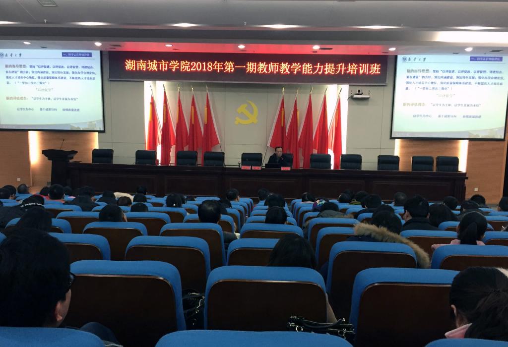 (本网讯)1月13日,学校举办了2018年第一期教师教学能力提升培训班,特邀湖南师范大学向玉乔教授、徐满才教授和南华大学龙双涟教授作相关培训报告。校长李建奇出席培训班并作重要讲话,永利官网200多名青年教师参加了培训。