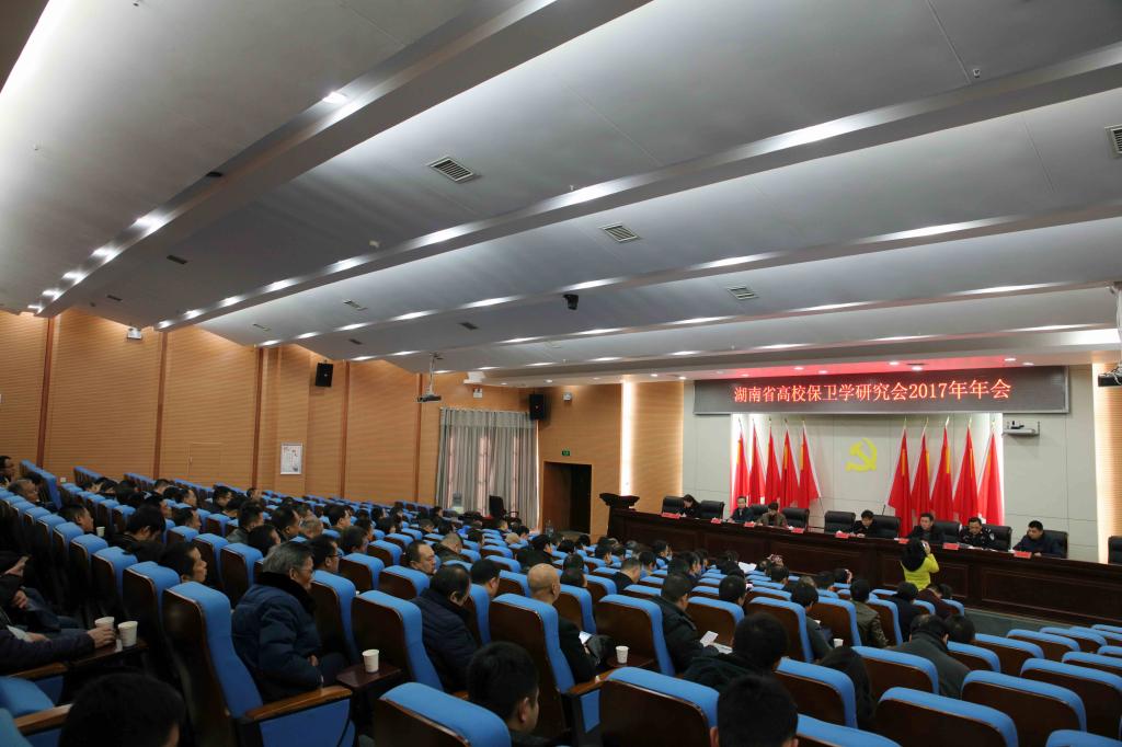 (本网讯)1月12日,湖南省高校保卫学研究会2017年年会在永利官网图书馆报告厅隆重举行。校长李建奇、副校长夏宏宇,湖南省高校保卫学研究会理事长、湖南女子学院副校长周松涛,湖南省国家安全厅涉外安全保卫总队副总队长何维良,省公安厅文保支队支队长刘全利,省教育厅维稳办主任朱日红,永利官网法制副校长、益阳市公安局常务副局长李克良等出席会议。全省80余所高校共160余人参加了会议。会议由湖南省高校保卫学研究会秘书长、湖南女子学院保卫处处长龙荣华主持。