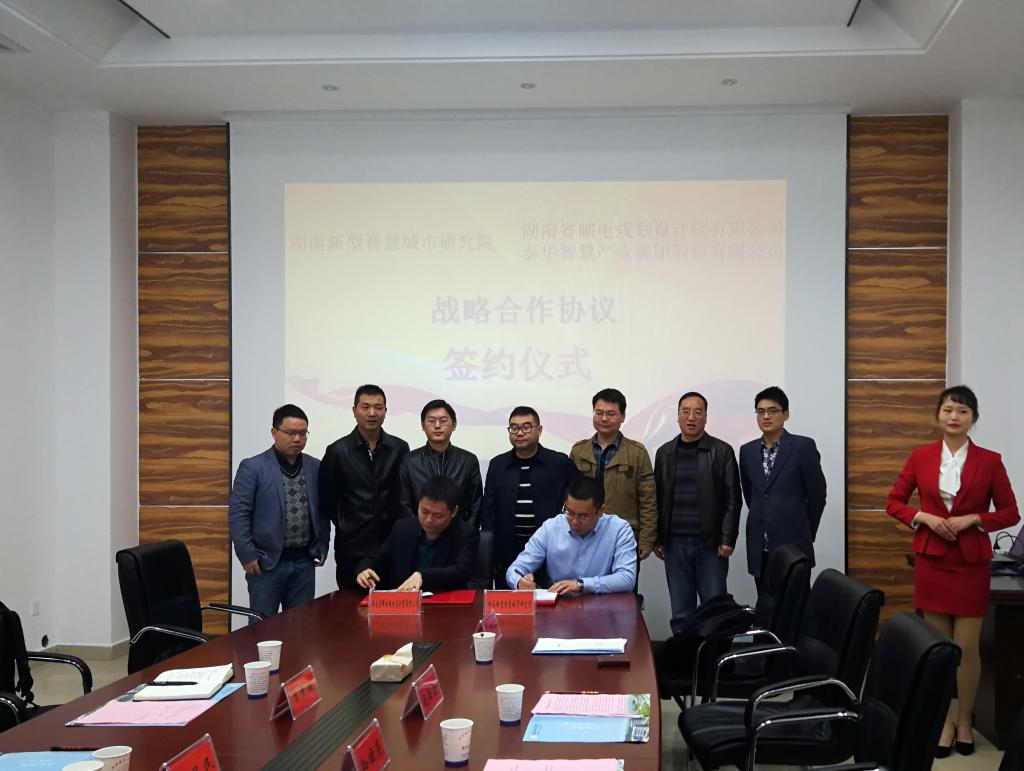 (本网讯)3月22日下午,永利官网湖南新型智慧城市研究院(简称研究院)与湖南省邮电规划设计院有限公司(简称邮电设计院)、泰华智慧产业集团股份有限公司(简称泰华智慧)等多家合作伙伴分别签订了战略合作协议。副校长郑卫民,研究院院长李梦醒,邮电设计院总经理助理孙晓亮,泰华智慧长沙分公司总经理张明等出席签约仪式。仪式由李梦醒主持。