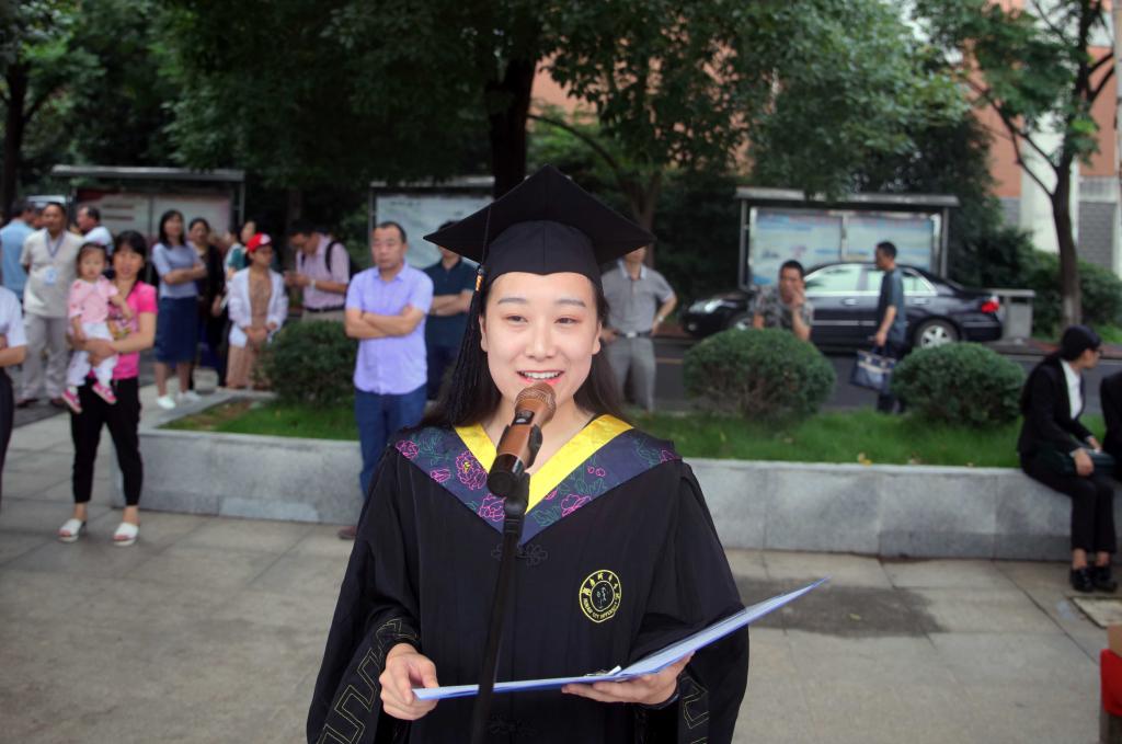 毕业生代表建筑与城市规划学院位笑晨、材料与化学工程学院董振昊分别上台发言。他们表达了对母校的诚挚谢意,表示不管走到哪里,不管在什么样的岗位上工作,都会承担国家、民族和社会赋予的责任,开辟又一段绚烂人生之旅,为母校争光添彩。