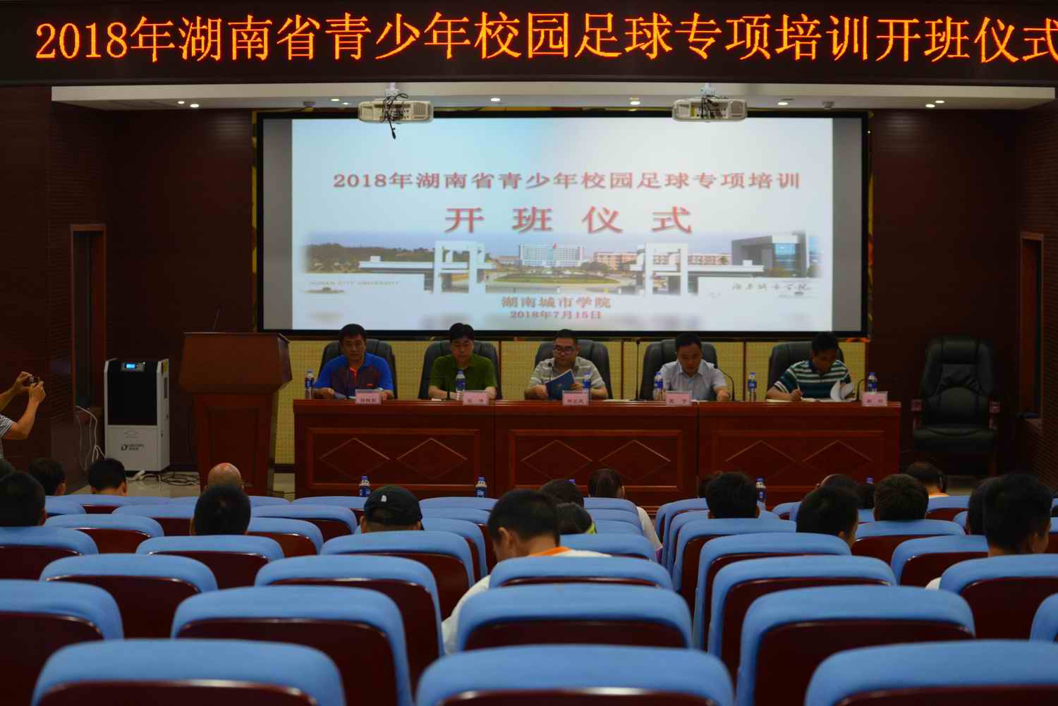 (本网讯)7月15日上午9:30,由湖南省教育厅、湖南省青少年校园足球工作领导小组主办,永利官网承办的2018湖南省青少年校园足球中小学骨干体育教师培训开班。副校长郑卫民,省教育厅体卫艺处王宇科长、省校园足球办公室主任李泽群,学校教务处负责人、体育学院领导班子成员、本期培训班授课教师、班主任及工作人员等出席了开班仪式。益阳地区、常德地区2018年校园足球中小学骨干体育教师80名学员参加了此次培训。