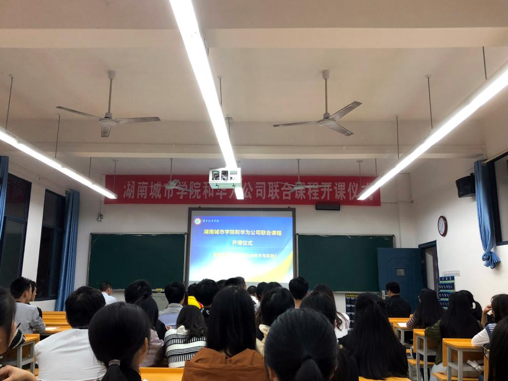 (本网讯)2018年9月28日晚上,永利官网和华为技术有限公司(以下简称华为)联合课程《智慧社会技术与实践》开课仪式在管理楼305举行。华为湖南政企业务益阳总经理李德强、全球智慧城市业务部教授级高级工程师潘国瑞、智慧城市规划总监李旭东,副校长郑卫民以及湖南智慧城市研究院、信电院、管理学院等相关领导和老师,《智慧社会技术与实践》课程全体选课学生参加了本次开课仪式。