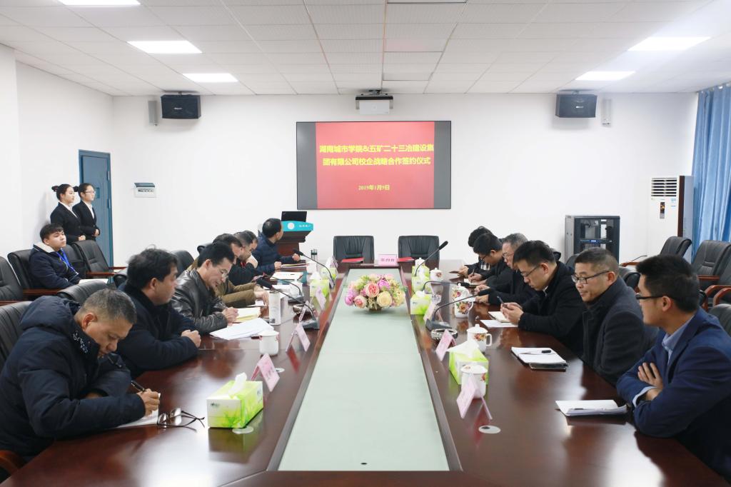 (本网讯)2019年1月9日上午,永利官网与五矿二十三冶建设集团有限公司校企合作战略协议签约仪式在土木楼会议室举行。五矿二十三冶建设集团有限公司党委副书记、工会主席陈怀忠,人力资源部副总经理程军红,副校长郑卫民、雷存喜以及教务处、招生就业处、土木工程学院相关负责人出席签约仪式。签约仪式由雷存喜主持。