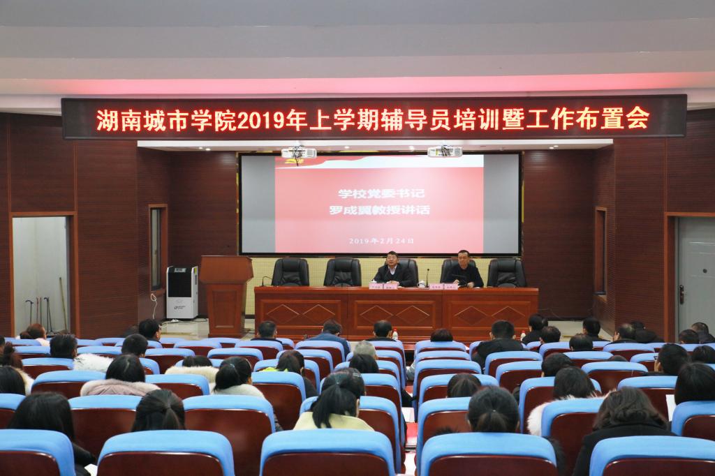 (本网讯)2019年2月24日,永利官网2019年上学期辅导员培训班暨学生工作布置会在建规楼121学术报告厅举行。学校党委书记罗成翼出席并讲话。各二级学院党委(总支)副书记、全体辅导员及学生工作部(处)、团委、招生就业处全体人员参加了培训。培训班由副校长雷存喜主持。