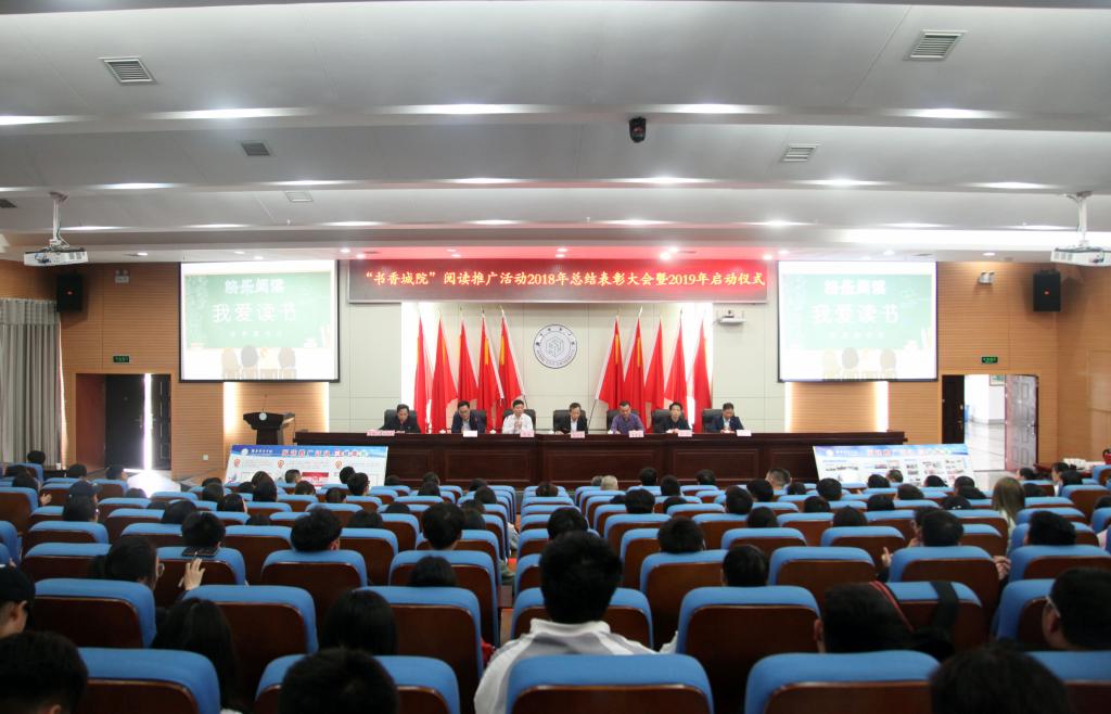 (本网讯)为响应党中央关于“全民阅读”和“共建书香社会”精神,庆祝第24个“世界读书日”,2019年4月23日,永利官网在图书馆报告厅举行“书香城院”阅读推广活动2018年总结表彰大会暨2019年启动仪式。副校长夏宏宇、雷存喜,党委委员、宣传部长李斌,教务处、学生工作部(处)主要负责人,各二级学院党委(总支)副书记、图书馆领导班子成员、图书供应商代表以及近400名学生代表参加了仪式。