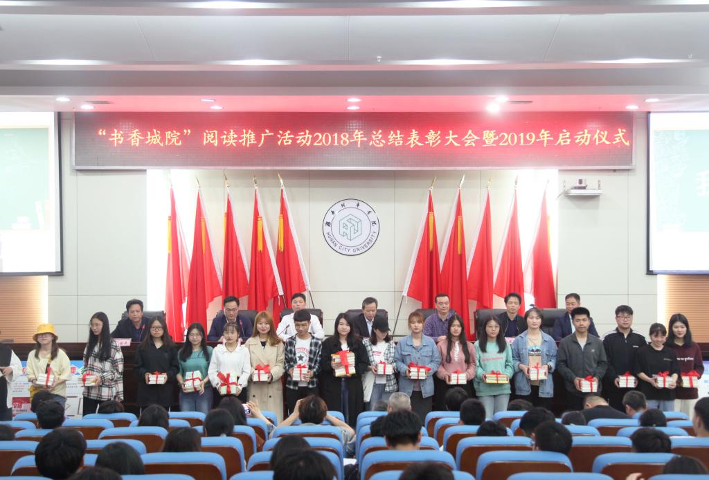 李斌通报了2018年yl23455永利官网阅读推广活动省级以上获奖情况,学生工作部部长龙文通报了2018年阅读推广活动校级获奖情况。与会领导对获奖学生和集体表示祝贺,并为他们颁发荣誉证书,赠送书籍。