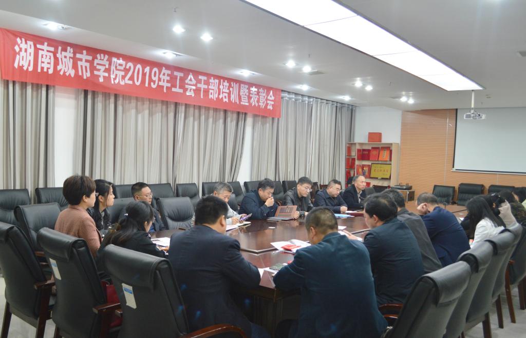 (本网讯)2019年4月28日下午, 永利官网2019年工会干部培训暨表彰会在图书馆会议室召开。副校长夏宏宇,副校长、工会主席郑卫民,工会三个委员会委员、分工会主席、2018年度芙蓉标兵岗班长、芙蓉百岗明星参加会议。会议由郑卫民主持。