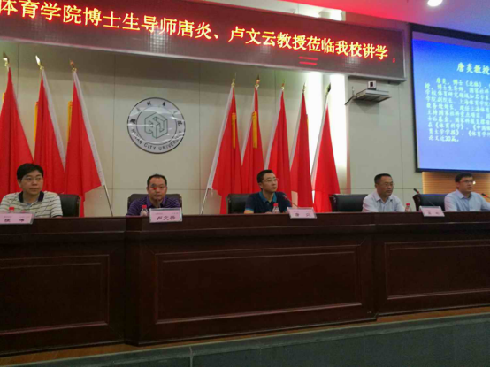 (本网讯)2019年6月28日上午,上海体育学院博士生导师唐炎、卢文云教授应邀在图书馆报告厅为永利官网师生作了学术讲座。学校学科建设与发展规划处相关负责人,体育学院全体教职工、2016级考研学生以及2017级全体同学聆听了讲座。