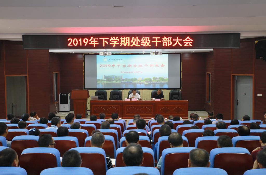 (本网讯)2019年8月27日,永利官网在建筑规划楼121报告厅召开了2019年下学期处级干部大会。全体校领导和副处级以上干部参加了会议。会议由党委书记罗成翼主持。