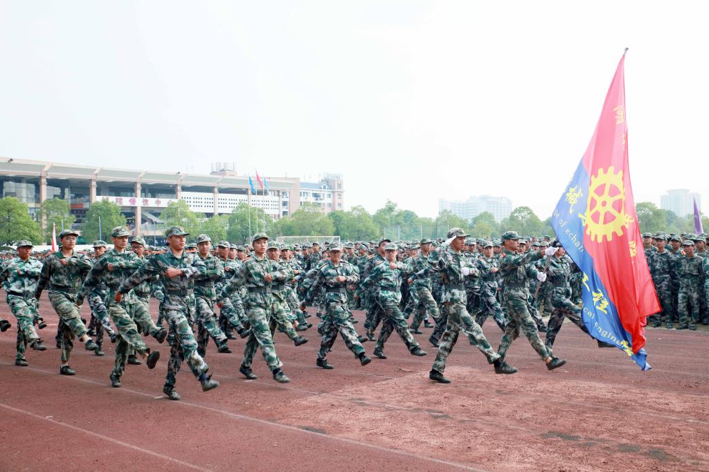 大会在庄严、雄壮的国歌和校歌声中拉开帷幕。党委书记罗成翼检阅了由2019级参训新生组成的方队。