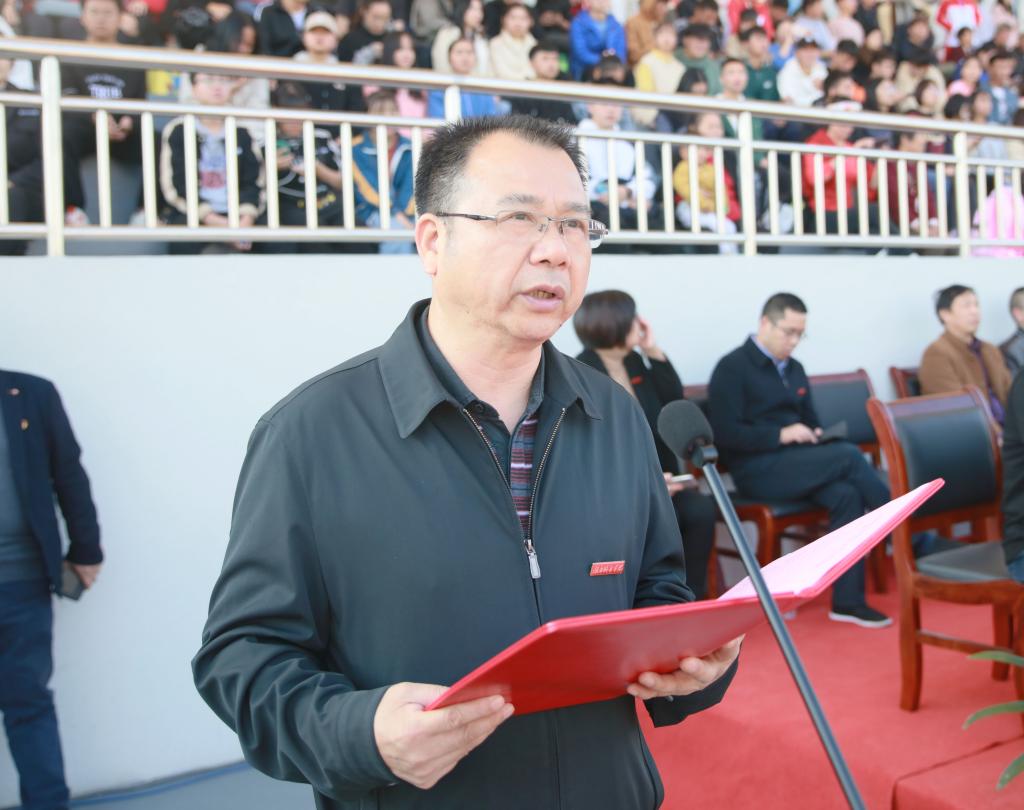 校长李建奇致开幕词,他希望全体师生以此次运动会为契机,将体育锻炼作为一种良好的习惯,将身体健康作为一种人生追求,让体育与快乐同行,运动与生命同在,健身与精彩相伴,弘扬体育精神,涵养体育道德,将体育运动中所蕴含的团队合作、公平竞争、坚韧顽强、拼搏进取等体育精神转化为成长的不竭动力,为推进永利官网特色鲜明的高水平应用型大学建设贡献自己的力量。