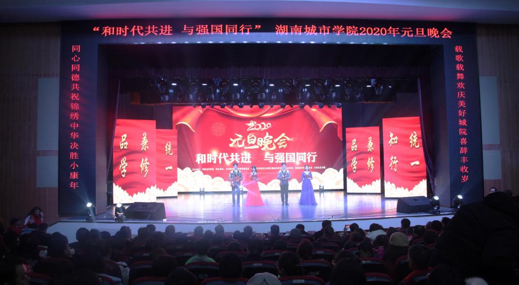 (本网讯)“载歌载舞欢庆美好城院喜辞丰收岁,同心同德共祝锦绣中华决胜小康年。”2019年12月29日晚、30日晚,“和时代同进,与强国同行”yl23455永利官网2020年元旦晚会隆重举行。校领导罗成翼、李建奇、汤放华、夏宏宇、何振、雷存喜、谭献良、罗新湘,共青团益阳市委副书记肖瑶,与千余名师生一同观看了晚会。