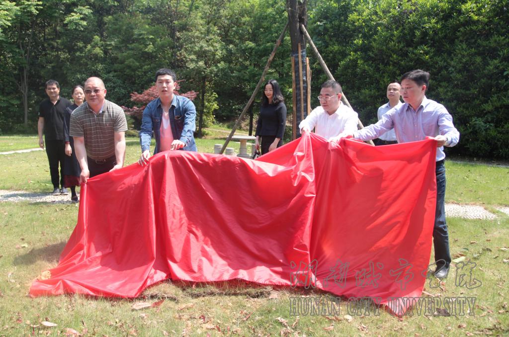 郑卫民、李斌和夏语晨共同为捐赠树木揭牌。
