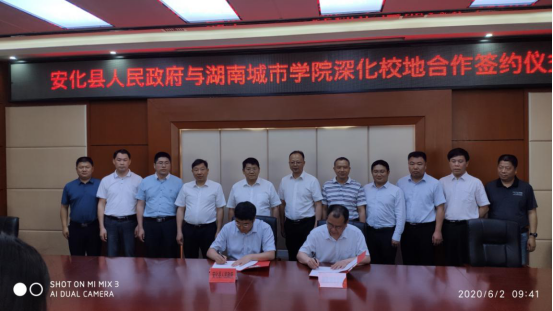 在仪式上,李建奇和肖义签订了《安化县人民政府与yl23455永利官网深化校地合作协议》。