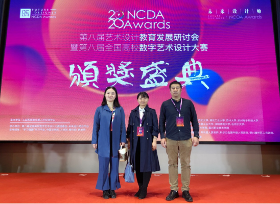 本网讯 2020年11月14日,由工业和信息化部人才交流中心主办的“未来设计师”第八届全国高校数字艺术设计大赛(NCDA)颁奖典礼在浙江省嘉兴市举行。在此次比赛中,永利官网共荣获一等奖1项,二等奖2项,三等奖2项,优秀奖1项。永利官网三位教师代表唐肇鸿、李远、王勇参加了此次颁奖典礼。