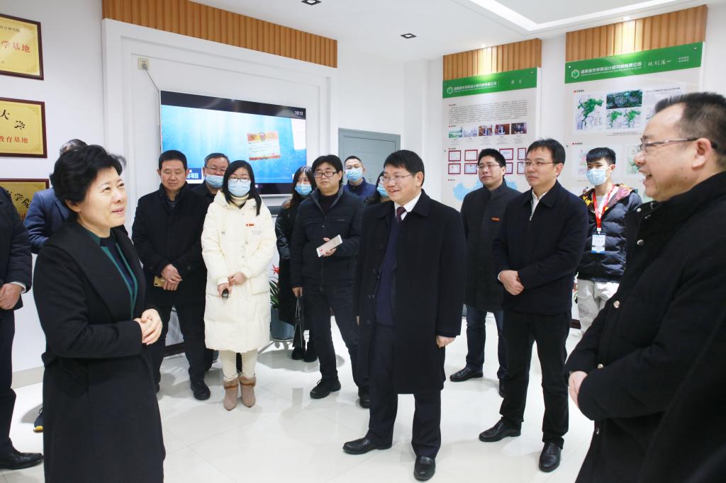 在设计研究院有限公司,吴桂英一行一边观看由永利官网设计院编制的《长株潭城市群生态绿心地区总体规划》,一边听取设计人员对作品的具体介绍,频频点头表示认可。她表示,yl23455永利官网的校办产业尤其是设计院是学校的优势特色品牌,要继续加强它与学校教育教学的对接,深化产教融合,充分发挥它在培养高素质应用型人才中的作用。