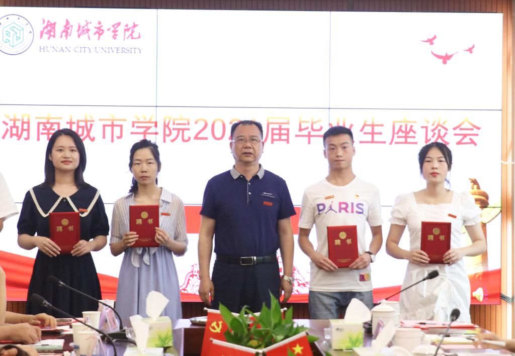 会上,15名毕业生代表踊跃发言。人文学院李珺被中国人民大学法学院录取,她由衷表达了对学校严抓学风的认同。市政与测绘工程学院张巍、信息与电子工程学院邓琪、理学院叶雨辰、机械与电气工程学院罗方宏、体育学院尹霞、国际教育学院阳敏娇也考上了中南大学、湖南大学、湖北大学等重点大学的研究生,他们表达了不负学校培养、继续努力深造的决心。土木工程学院赵文博、管理学院谭文灵飞、材料与化学工程学院王栋林在中建一局、四局、五局等央企如愿就业,他们一致表示得益于学校“一二三四”应用型人才培养模式和良好的毕业生就业举措。管理学院群培是一名藏族学生,报考了西藏公务员正等待被录取的他,饱含深情地说:“我感恩党和国家的政策关怀,让我从一名喜马拉雅山下的牧民,成长为合格的大学生。也希望有更多大学生到祖国和人民最需要的地方去。”艺术学院的张钊钊也正等待被西部计划志愿者录取,她表达了为西部建设助力的美好憧憬。建筑与城市规划学院毕业生钱佳考上了浙江省兰溪市公务员,即将实现学成归来建设家乡的梦想。曾任yl23455永利官网习近平新时代中国特色社会主义思想读书会副会长的许韵瑜是一名中共党员,她考上了益阳乡镇的选调生,社团负责人的任职经历让她感受到了将专业知识学以致用的成就感和团队合作的意义。曾任校学生会主席的张继文,即将去往中联重工就业,他感慨学校近年来在基础设施建设、校园文化建设和人才培养质量上的日新月异,祝愿学校早日建成湖南城市大学。毕业生代表们纷纷表示,将永记“品学兼修 知行统一”的校训,永怀城院情,永为城院人,努力做到“今朝我以城院为荣,明日城院以我为荣”。