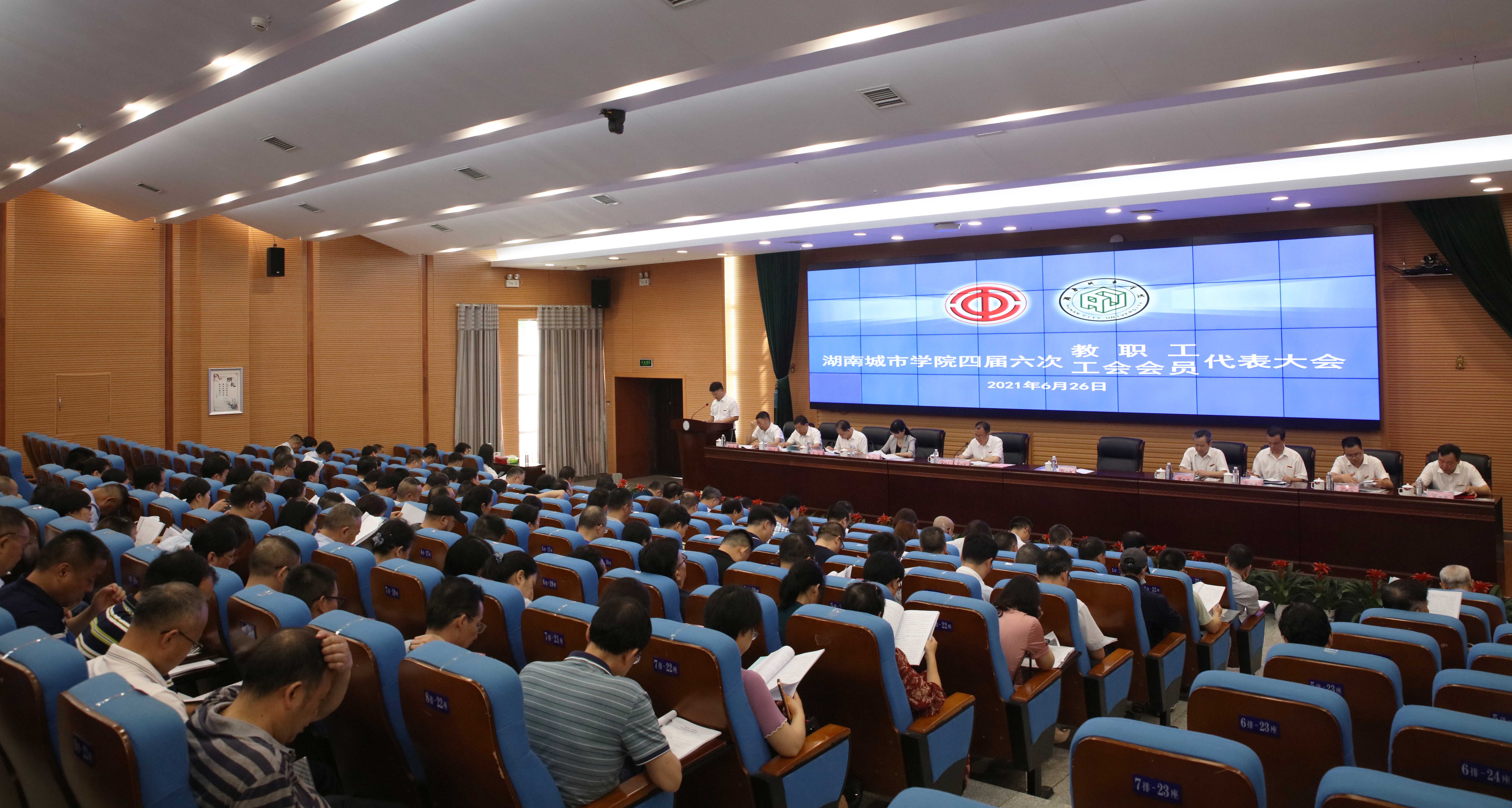 本网讯 2021年6月26日,yl23455永利官网第四届六次教职工、工会会员代表大会在图书馆报告厅召开。135名正式代表以及列席代表、特邀代表出席会议。校领导李建奇、汤放华、何旭娟、夏宏宇、何振、雷存喜、谭献良、袁志成、陈列尊、吕贤军在主席台就座。大会由党委书记李建奇主持。