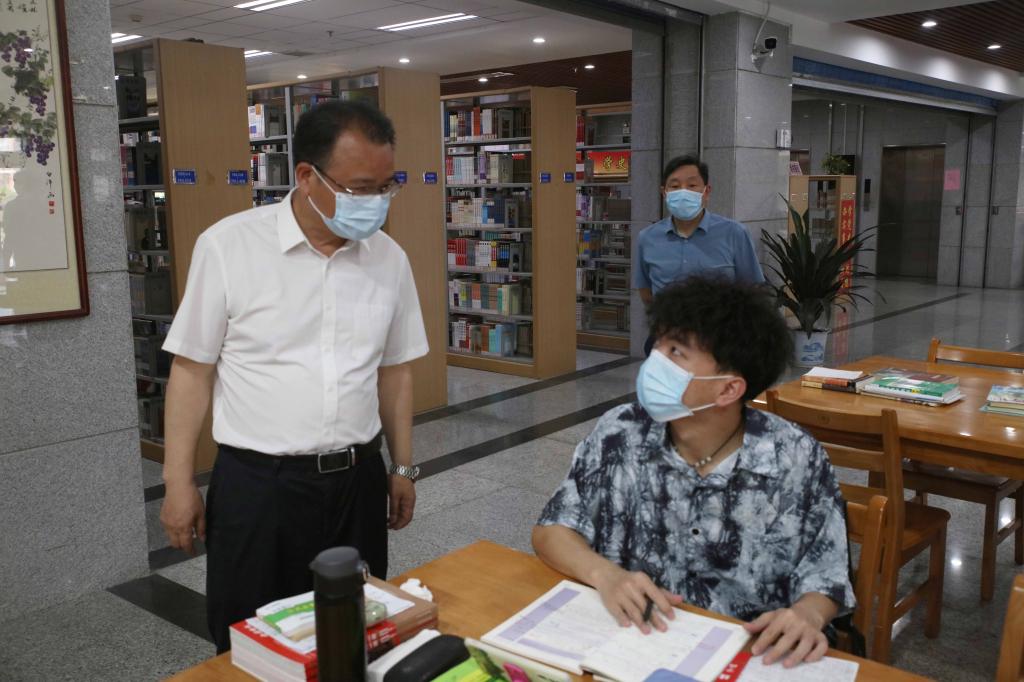 7月31日下午,李建奇带队对学校南门、北门、图书馆、食堂和学生宿舍等重点场所的疫情防控工作进行了实地检查,要求值班人员务必坚守岗位,坚持原则,严格落实疫情防控管理要求,叮嘱暑期留校学生理解并支持学校疫情防控要求,减少流动,做好自我防护。(文彦波 杨新成)