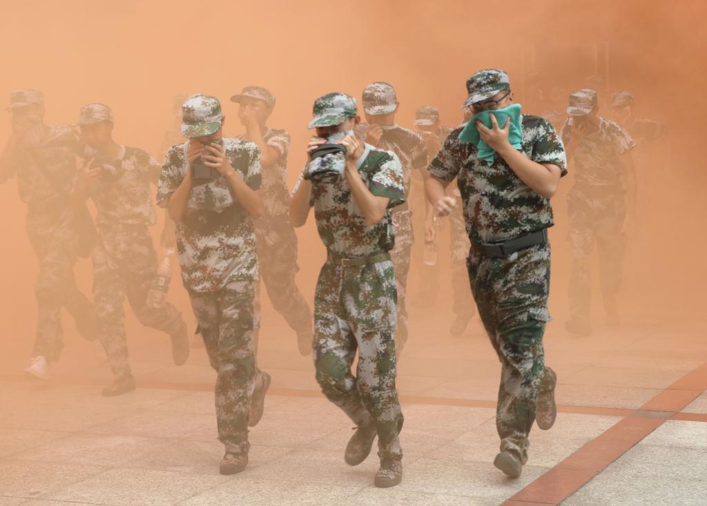 本网讯(记者 文彦波 摄影 博夕)“铃!铃!铃!”9月28日中午12时许,yl23455永利官网第二教学楼内突然传来一阵急促刺耳的警报声,滚滚浓烟从楼内各处漫出,一名名身着迷彩装的青年学子用湿毛巾捂住口、鼻,弯着腰迅速从楼内撤出,与此同时,校园里响起消防车的警笛声……