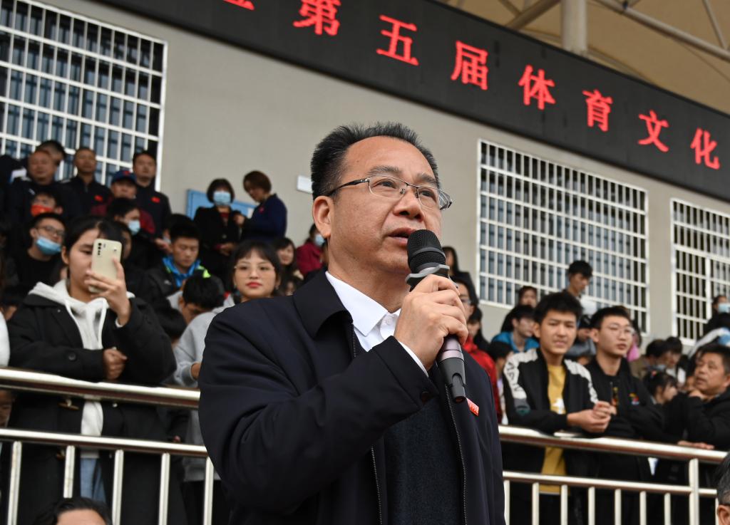 校长汤放华致开幕词,他沿用毛泽东同志在《体育之研究》中提出的“文明其精神、野蛮其体魄”,鼓励全体同学积极投身体育锻炼。他指出,要站在为党育人、为国育才的战略高度,树立健康第一的教育理念,让同学们在体育锻炼中享受乐趣、增强体质、健全人格、锤炼意志,成长成才。希望参加本次运动会的全体运动员要遵守规则、公平竞赛、团结互助,弘扬拼搏精神,展现当代青年大学生的良好风貌;希望全体教练员、裁判员要恪尽职守,确保比赛公平公正和运动会的圆满精彩;希望全体工作人员认真履职,为比赛提供热情、高效、安全、优质的服务;希望全体师生能够以此次运动会为契机,爱上运动,养成体育锻炼的良好习惯,练就一副健康强壮的体魄,涵养团结合作、公平竞争、顽强拼搏的体育精神,立志为党和国家健康工作五十年!